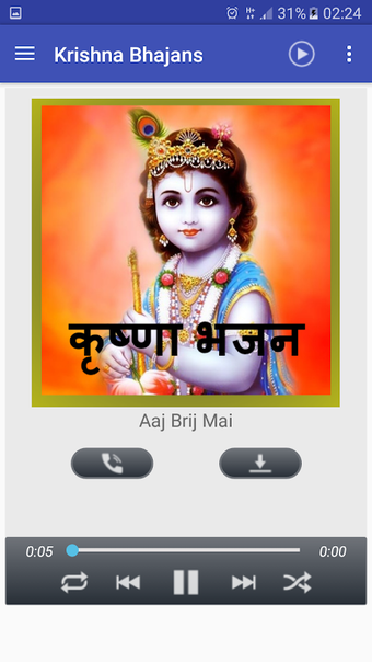 Krishna Bhajan adalah aplikasi multimedia yang menyajikan koleksi bhajan berkualitas tinggi dalam format mp3. Aplikasi ini menawarkan antarmuka yang mudah digunakan, memungkinkan pengguna untuk menikmati lagu-lagu religius dengan nyaman. Terdapat pemutar mp3 bawaan yang dilengkapi dengan opsi ulang dan acak, sehingga pengguna dapat mendengarkan lagu favorit mereka berulang kali tanpa gangguan.